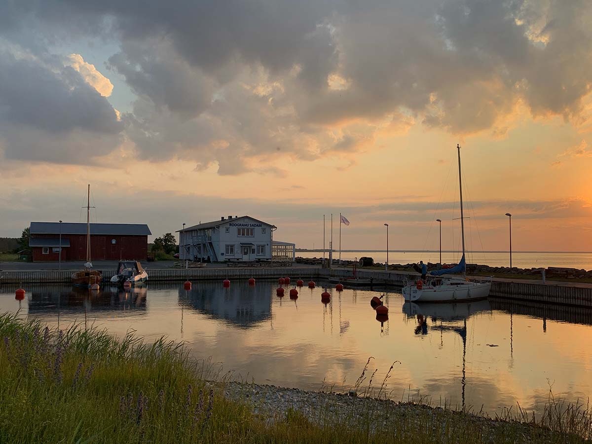 Roograhu is a small port with a mediocre pizza restaurant and camping. Sounds average, but something about the place was very beautiful. Long sunset, kids swimming and birds screaming, in the background was the tiny Kärdla airport and basically no sailboats except us.
