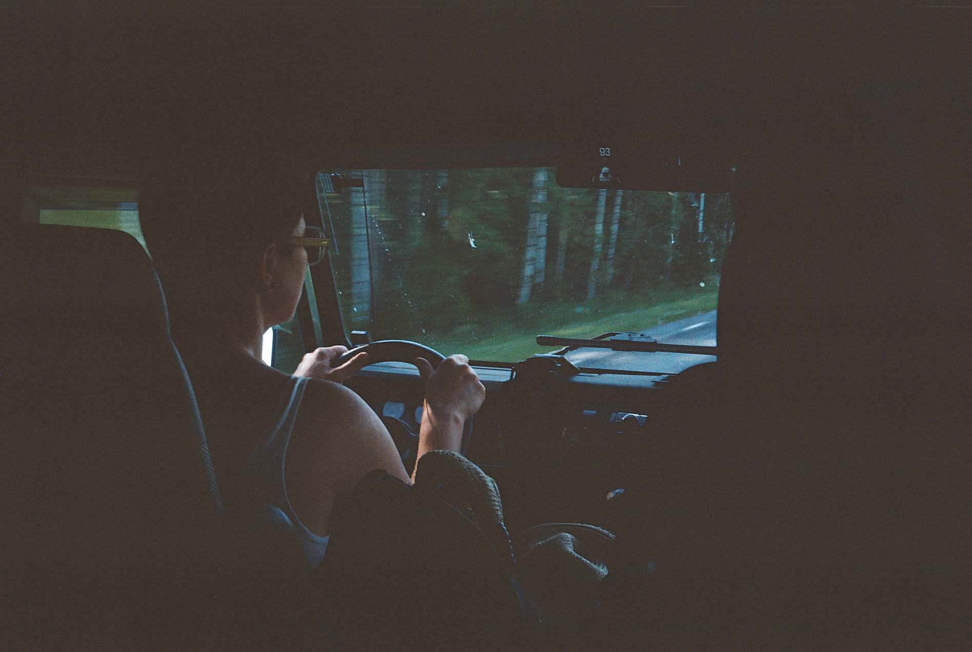 My aunt Signe with a massive car (old Land Rover) that is not suitable for highways, but very good for transporting boats.